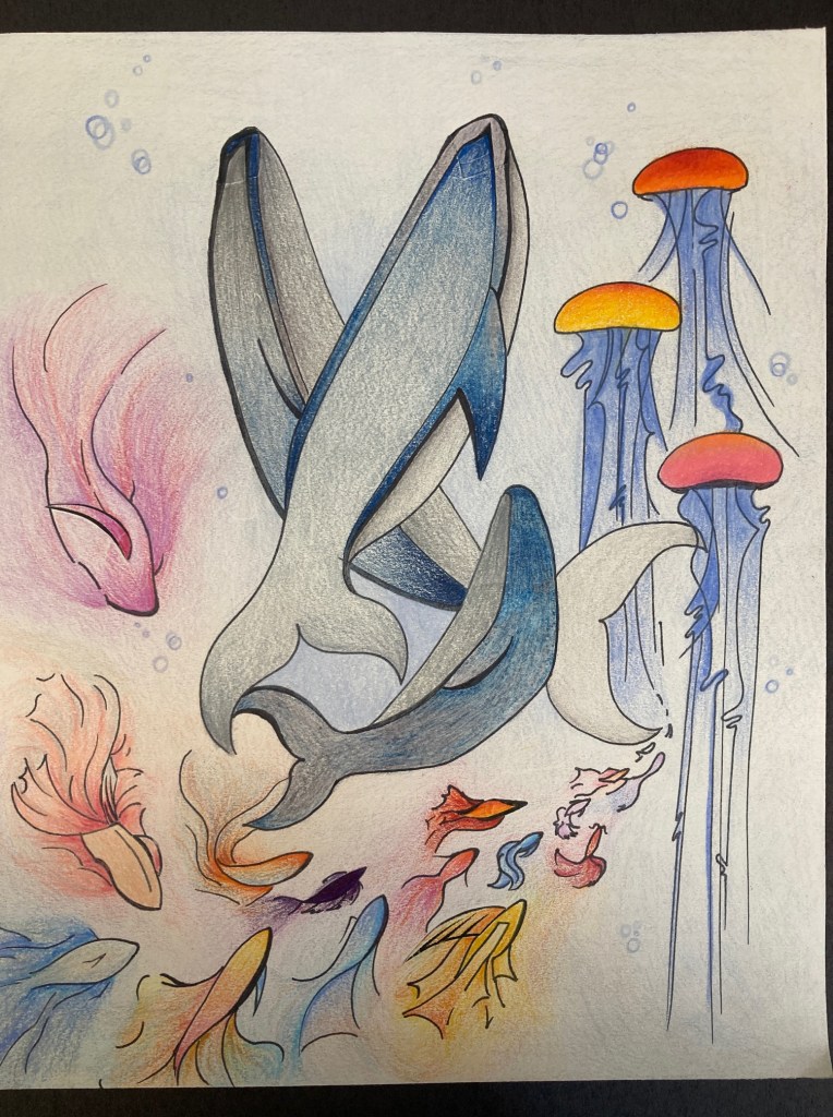 Students chose different sizes of a pineapple template where they were required to use a part or parts of it to make a new creation. Can you spot a part or parts of the pineapple template?